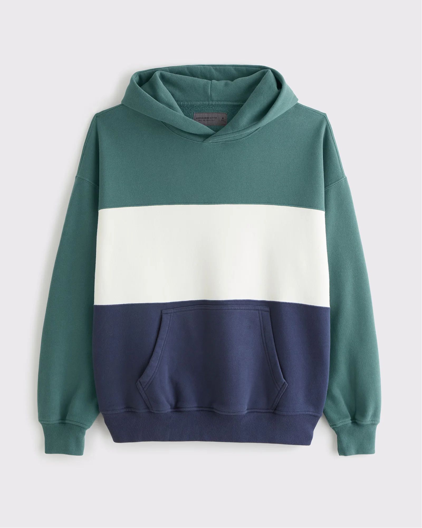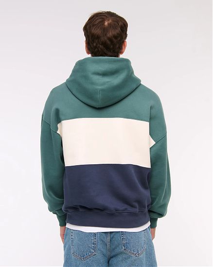 Комфортная толстовка Abercrombie & Fitch зелёного оттенка с рисунком, горизонтальными полосками и свободной посадкой. Мягкий трикотаж, заниженная линия плеч, эластичные манжеты и низ обеспечивают удобство каждый день.