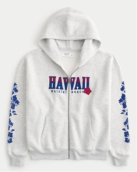 Мужская толстовка Hollister Boxy с молнией и вышивкой Hawaii. Оригинальная модель, бесплатная доставка и примерка по России