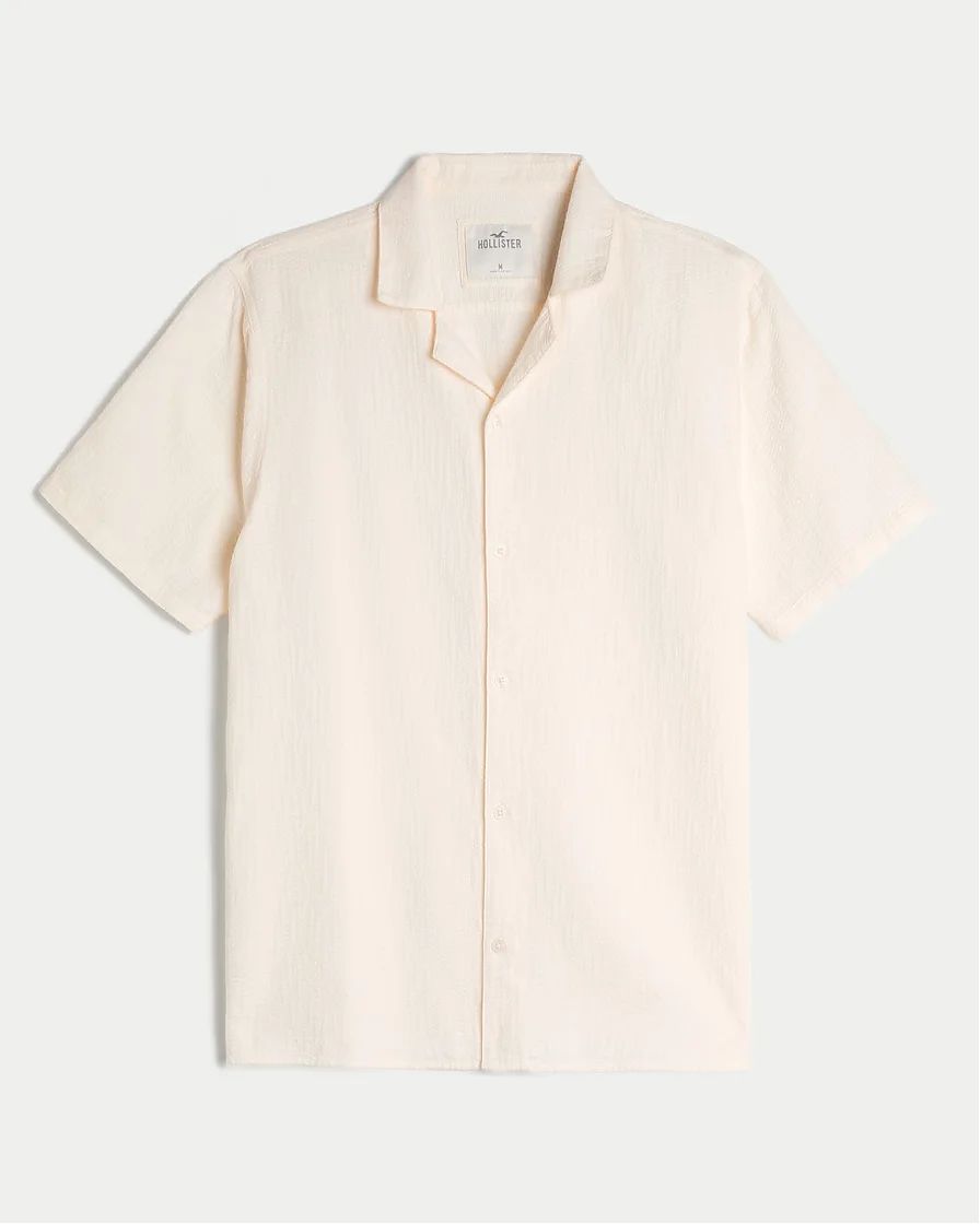 Рубашка Hollister кремового цвета, текстурный материал, расслабленная посадка. Оригинальная модель, бесплатная доставка и примерка по России.