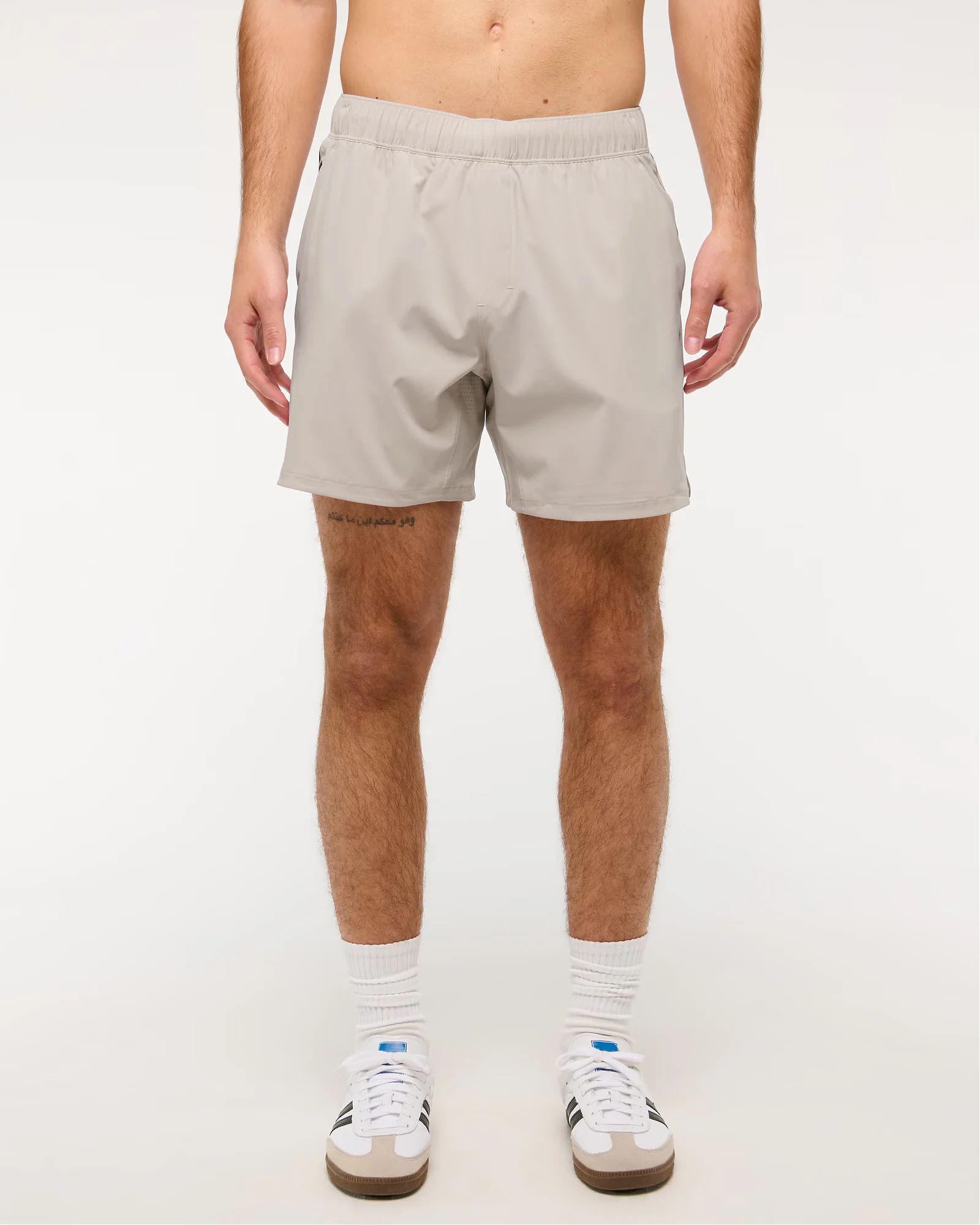 Комфортные мужские шорты YPB длиной 15 см без подкладки из лёгкой эластичной ткани для тренировок. Пояс на шнурке, боковые карманы и скрытый карман на молнии для мелочей..