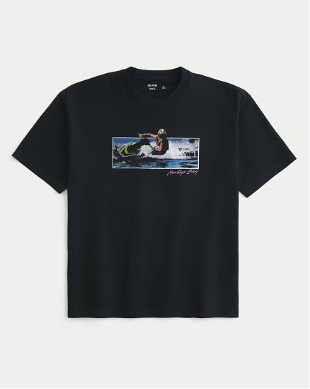 Мужская футболка Hollister Boxy Ямайка бей с принтами на груди и спине из мягкого хлопка. Оригинальная модель, бесплатная доставка и примерка по России