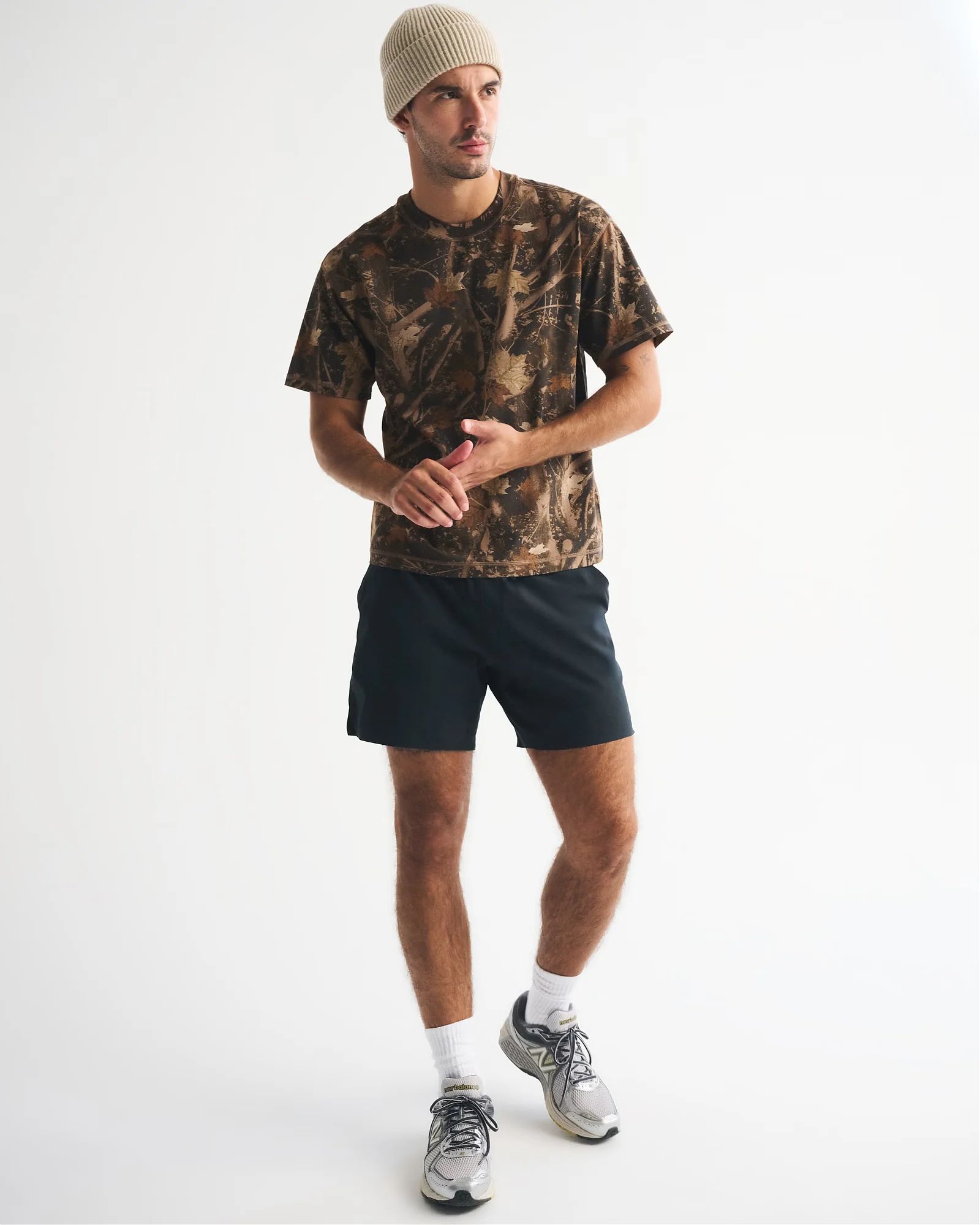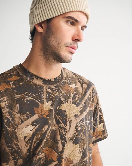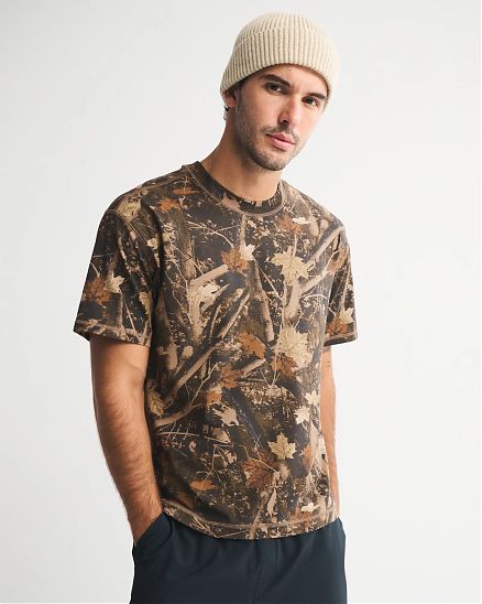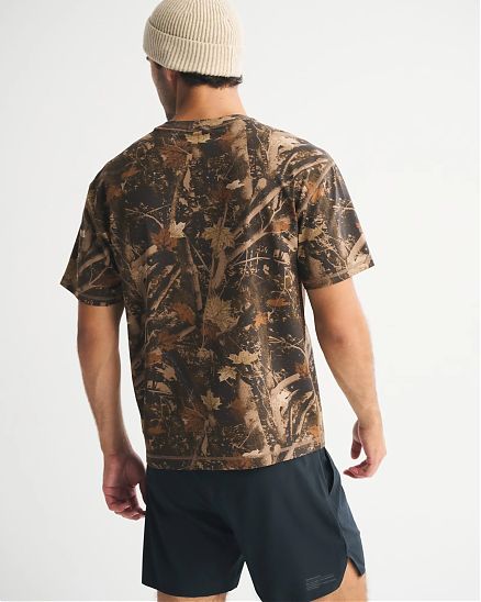 Комфортная мужская футболка YPB Active камуфляжного оттенка из мягкой дышащей ткани с эластаном, влагоотводящими свойствами, швами на плечах для свободы движений, круглым вырезом и удлинённым закруглённым низом, выполнена в расслабленной посадке.