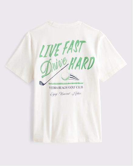 Мужская футболка Abercrombie & Fitch Relaxed с принтом гольфа на груди и спине для повседневного образа. Оригинальная модель, бесплатная доставка и примерка по России.