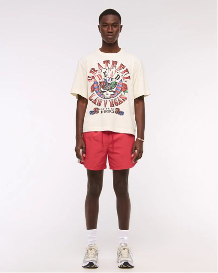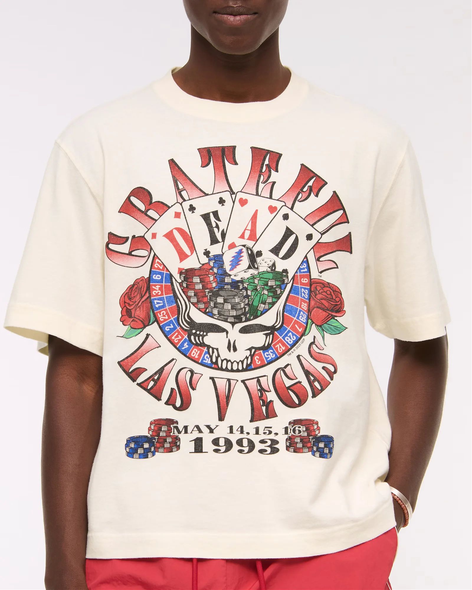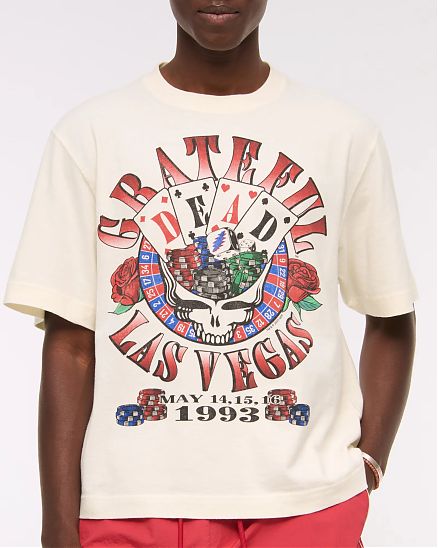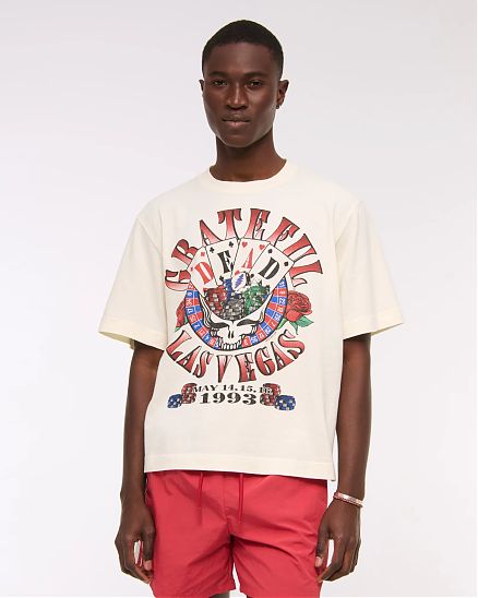 Мужская футболка Abercrombie & Fitch с фирменным принтом Grateful Dead, свободной посадкой и круглым вырезом, кремового цвета. Оригинальная модель, бесплатная доставка и примерка по России.