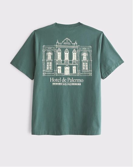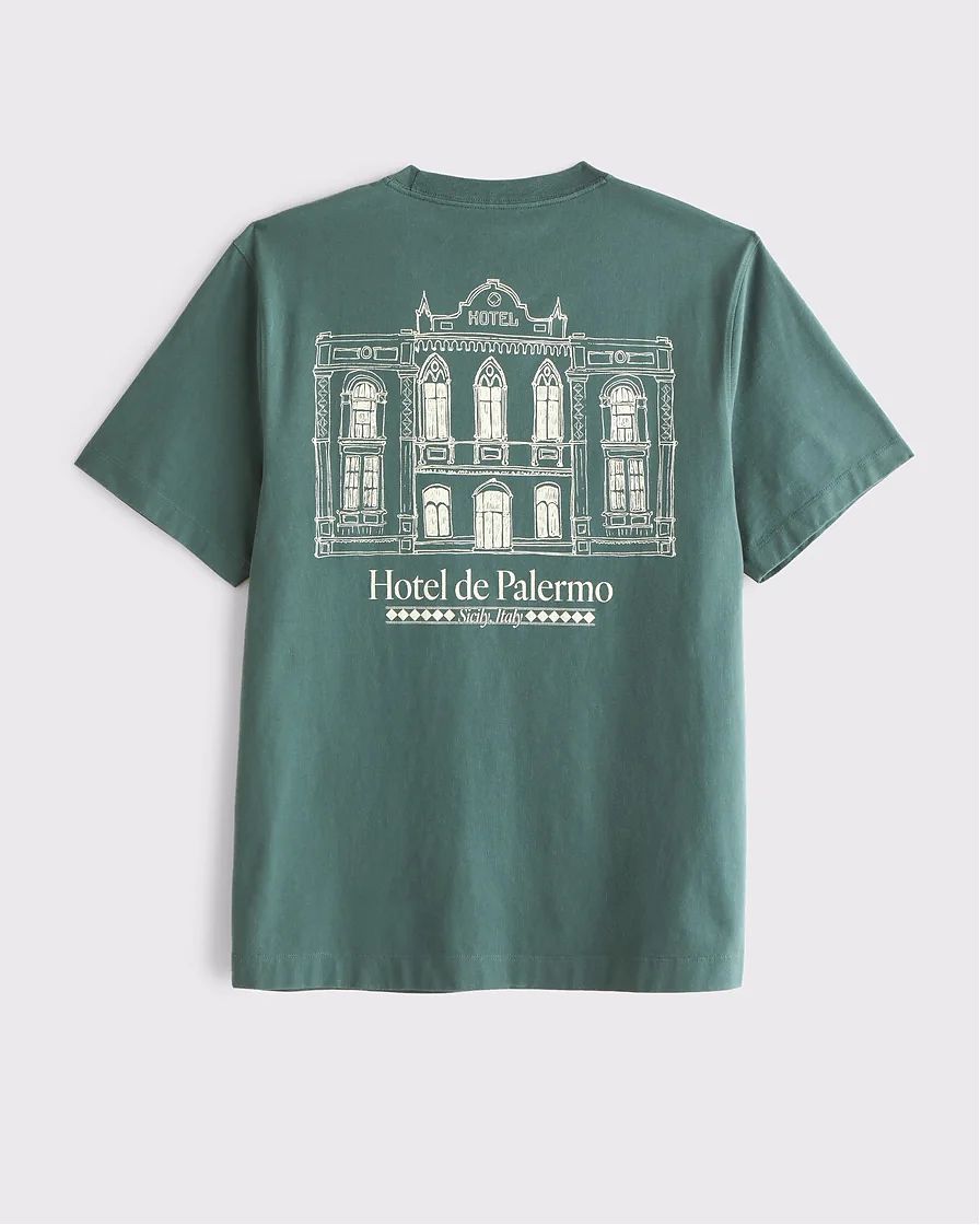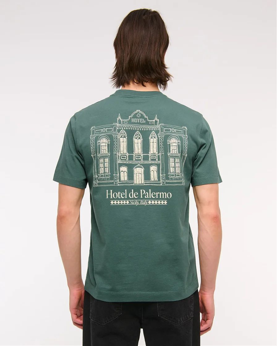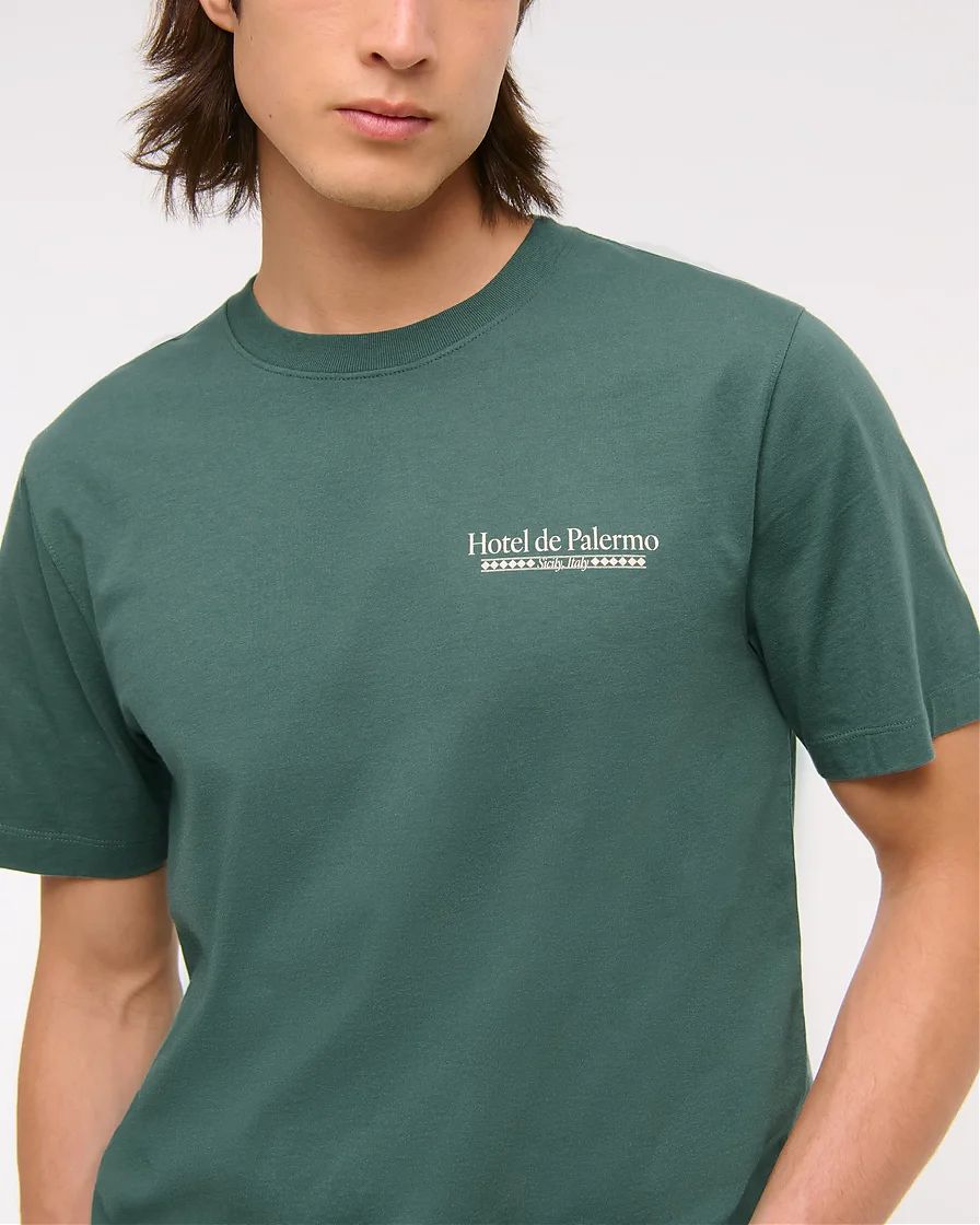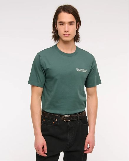 Мужская графическая футболка Abercrombie & Fitch с биополировкой, цвет зеленый принт Палермо спереди и сзади. Оригинальная модель, бесплатная доставка и примерка по России.