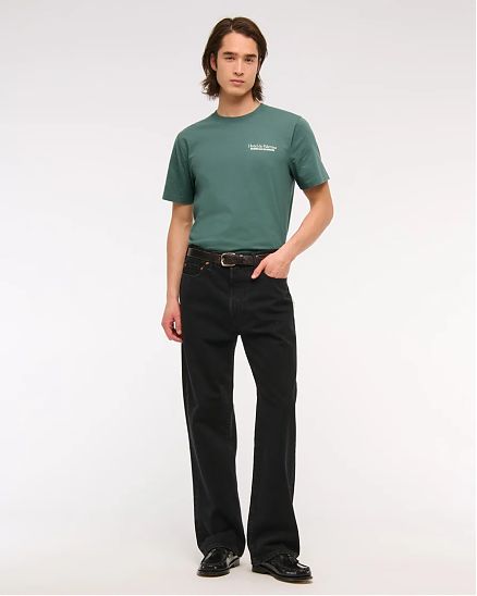 Оригинальная мужская футболка Abercrombie & Fitch зеленого цвета из плотного мягкого трикотажа с биополировочной отделкой, новый классический крой по спине, круглый вырез и прямой низ. Графика на левой части груди и на спине.