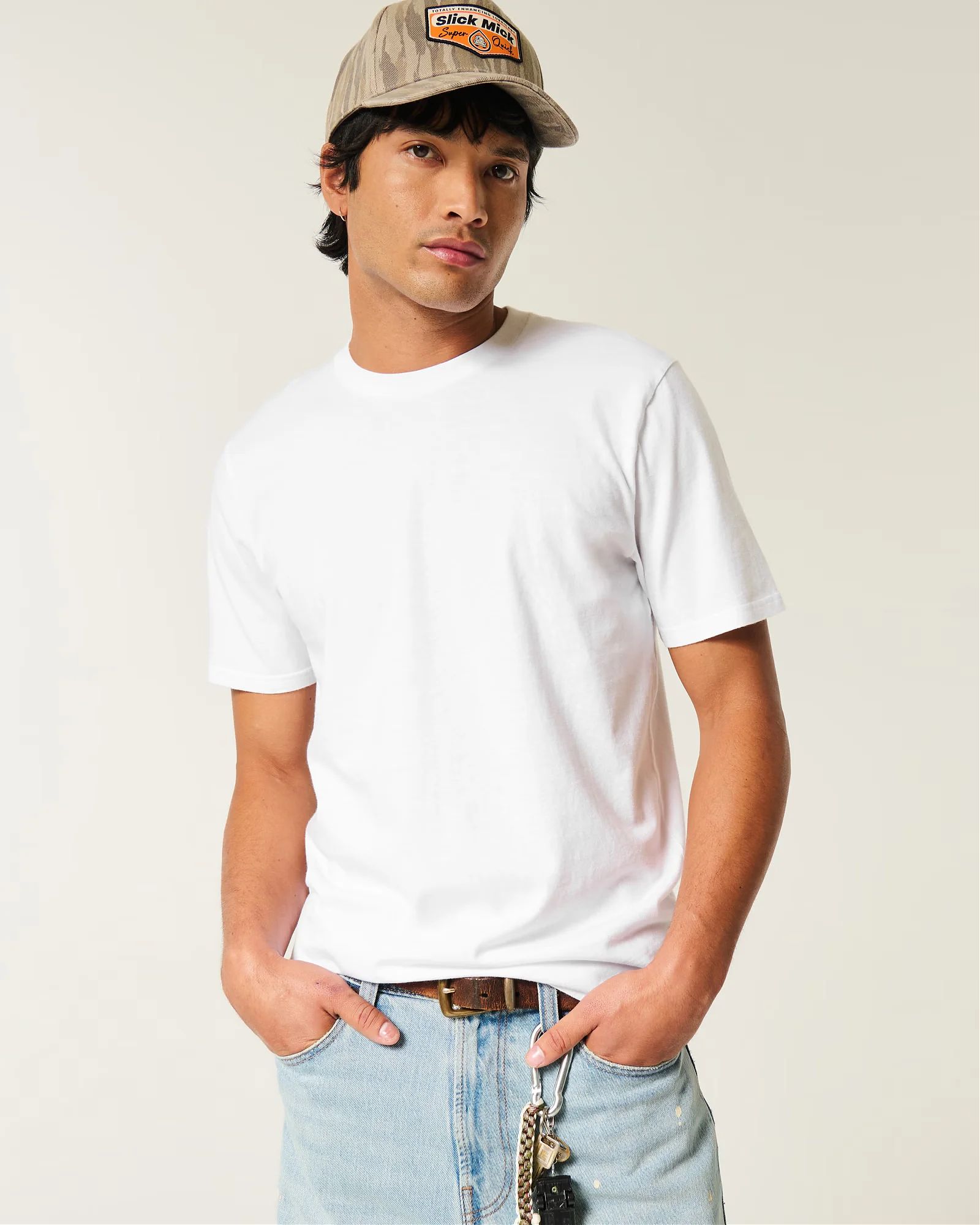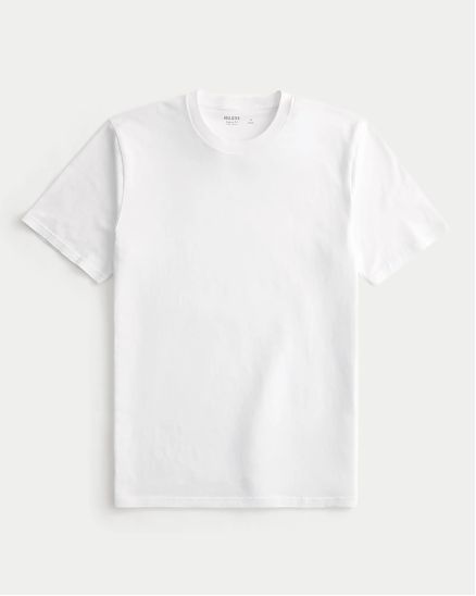 Новая мужская футболка Hollister белого цвета из мягкого хлопка с круглым вырезом и короткими рукавами, выполнена в классической посадке.