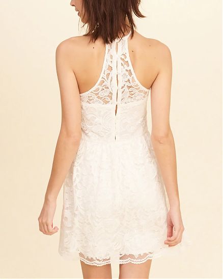 Оригинальное женское платье Hollister кремового цвета с вышивкой.