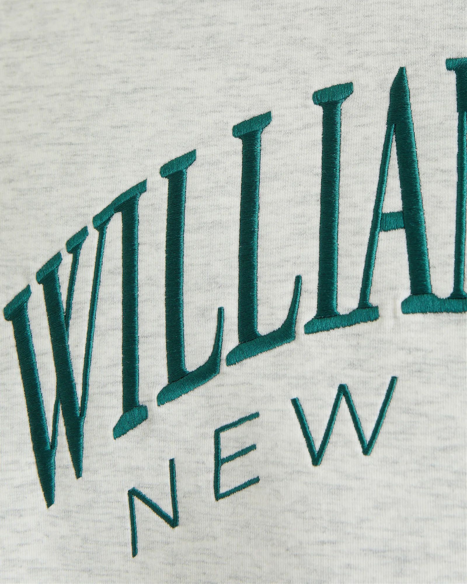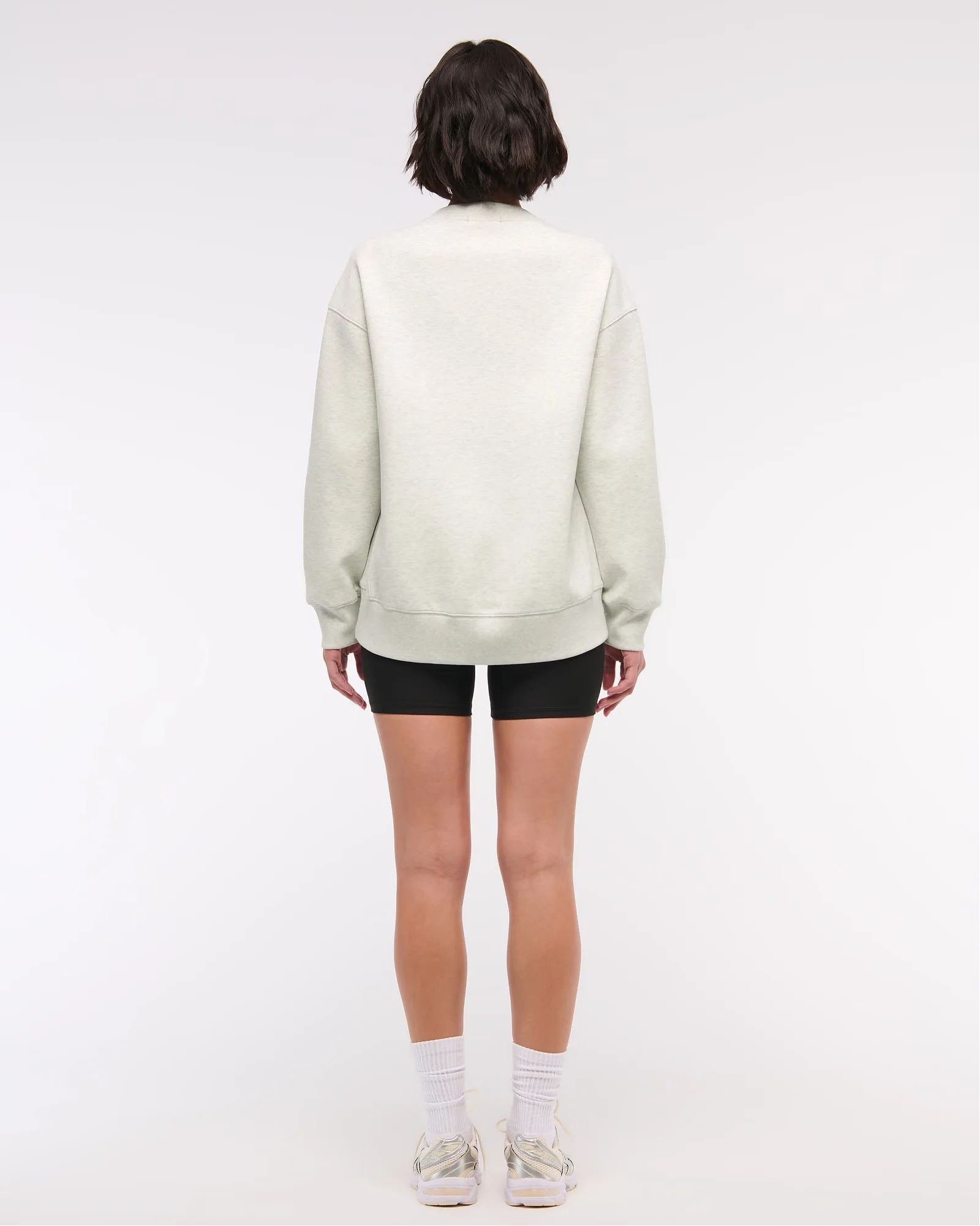 Новый женский свитшот YPB серого меланжевого цвета из плотной и мягкой ткани на основе неопрена, которая хорошо тянется и дышит. Гладкая изнанка, слегка удлиненный силуэт, круглый вырез и аккуратные швы, спереди вышитая надпись.