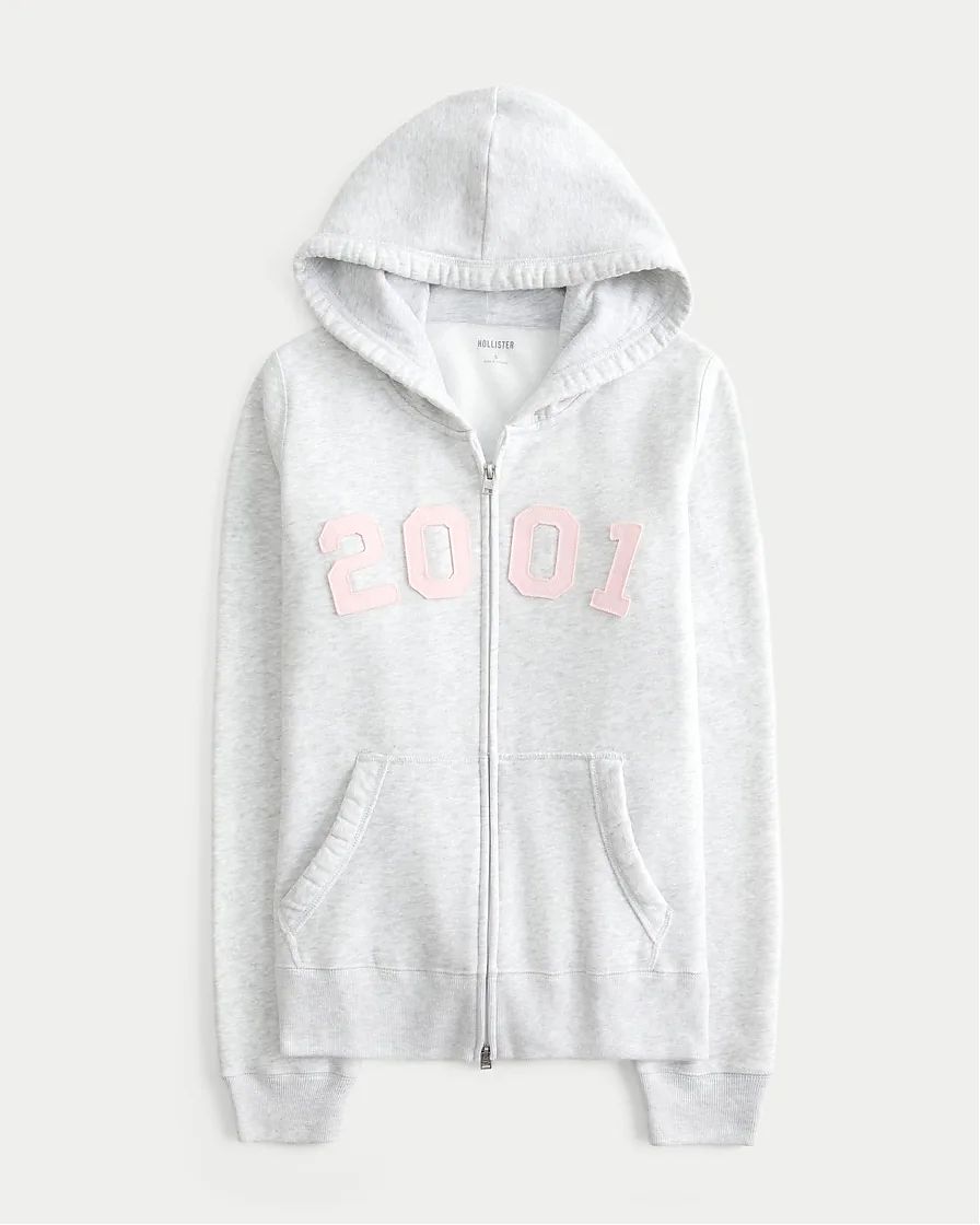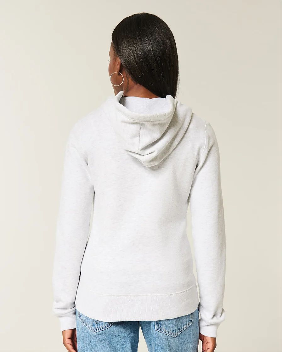 Оригинальная женская толстовка Hollister серого цвета приталенного кроя: супермягкий флис, молния, длинные рукава, капюшон и передние карманы, графическая аппликация Athl Dept.