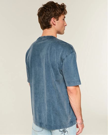 Мужская футболка Hollister выстиранного тёмно-синего оттенка из плотного хлопка с круглым вырезом. Оригинальная модель, бесплатная доставка и примерка по России.