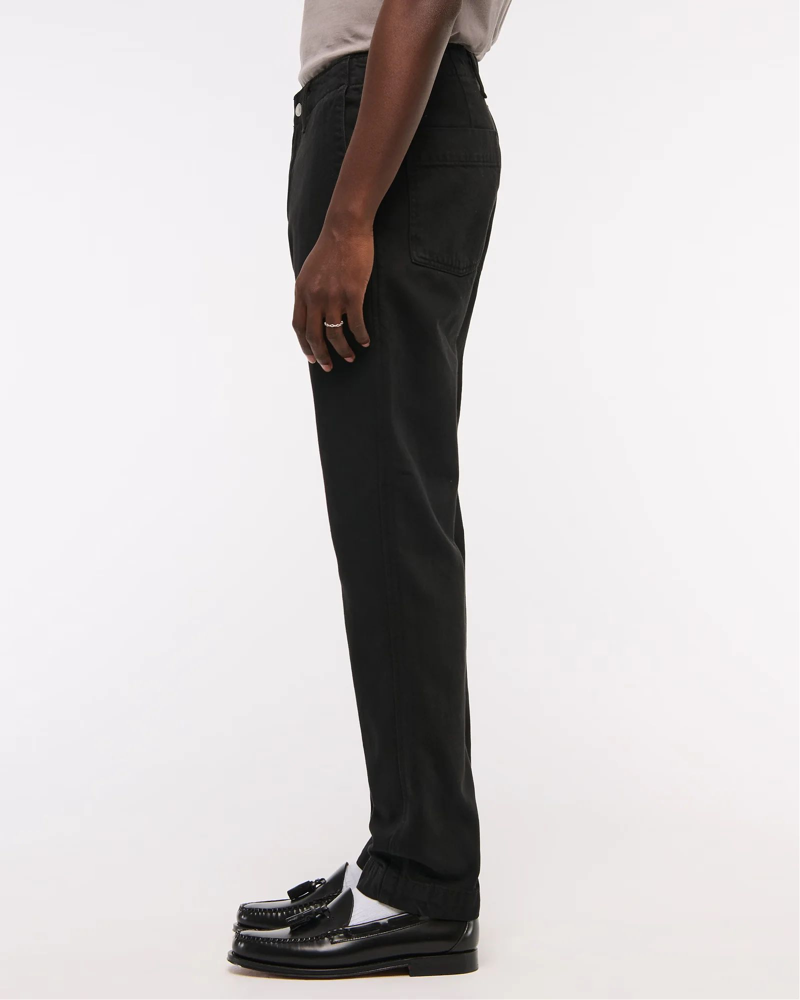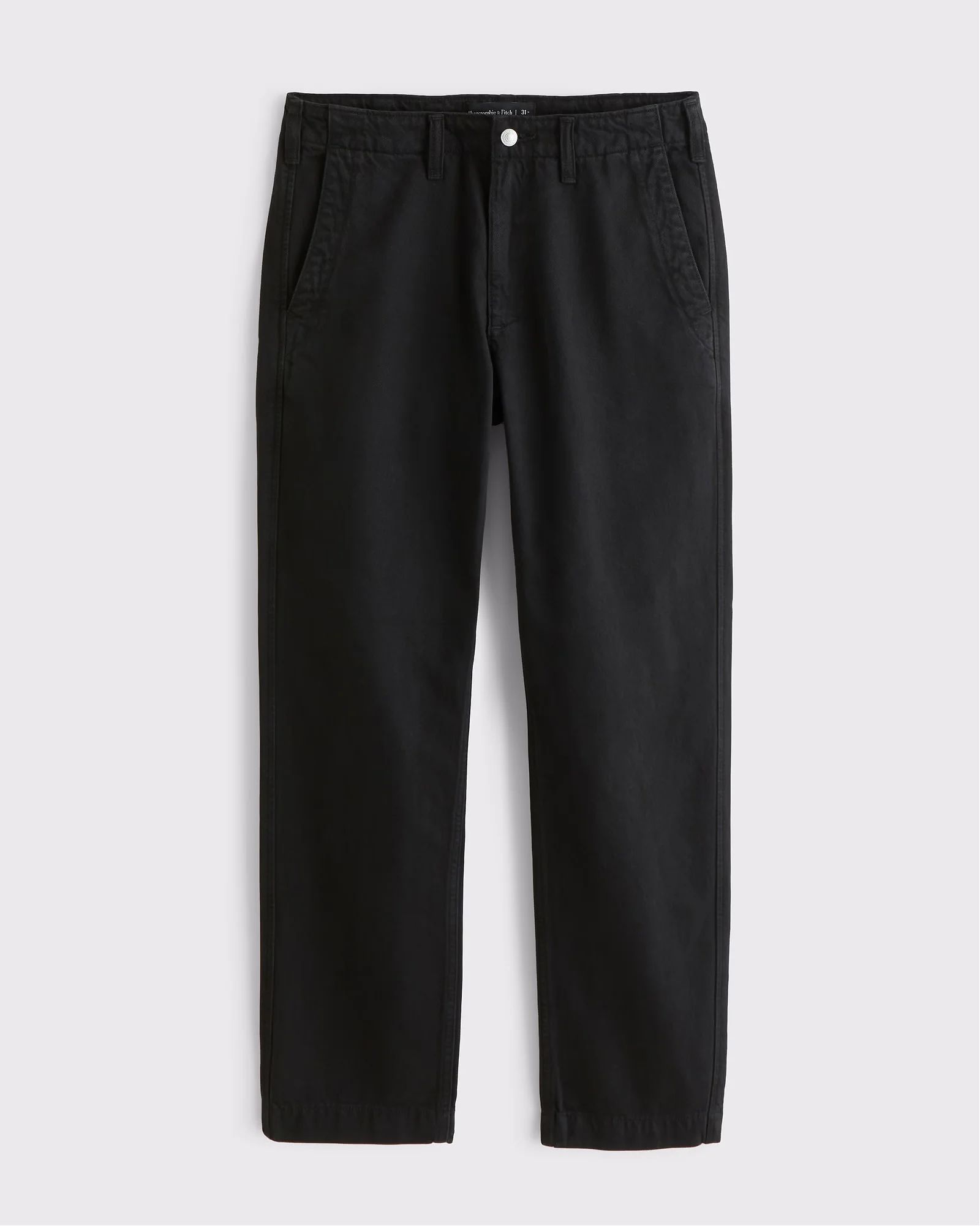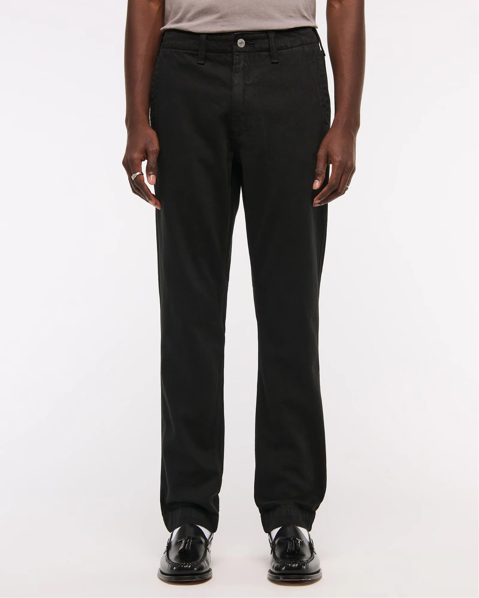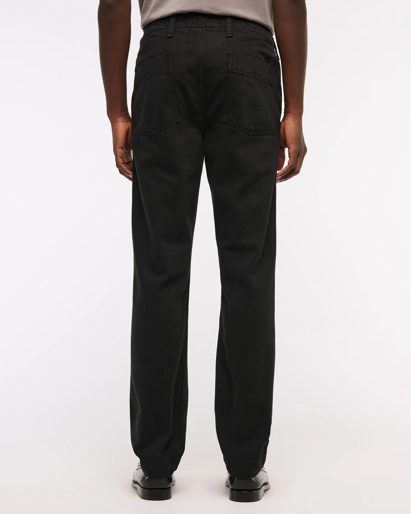Комфортные мужские джинсы Abercrombie & Fitch чёрного цвета из лёгкого денима с прямой штаниной, немного свободные в бедре и с аккуратным низом. Удобная посадка для повседневной носки.