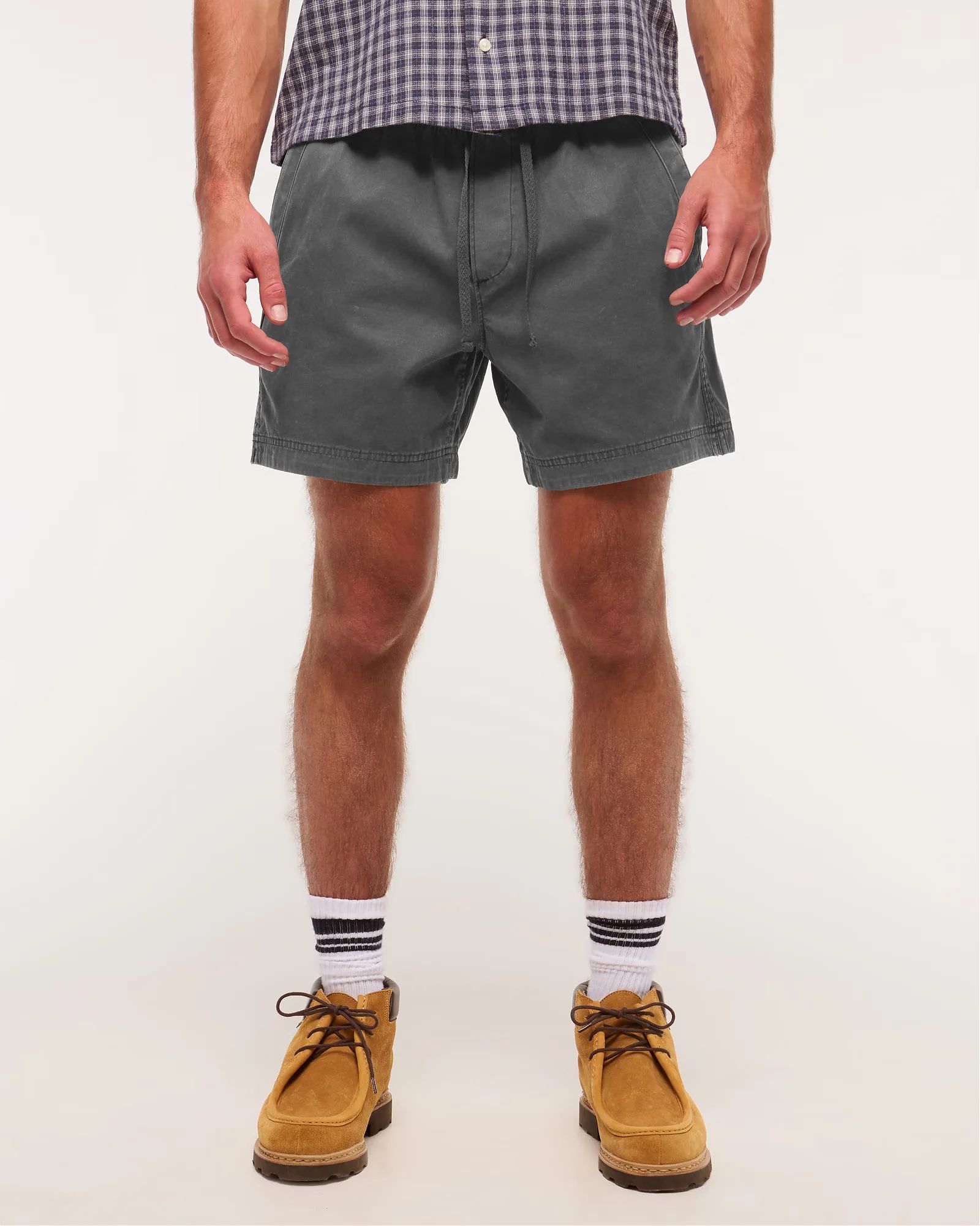 Комфортные мужские шорты Abercrombie & Fitch длиной 15см из мягкого лёгкого хлопка с эластичным поясом на шнурке. Расслабленная посадка, боковые карманы и скрытый карман на молнии для телефона.