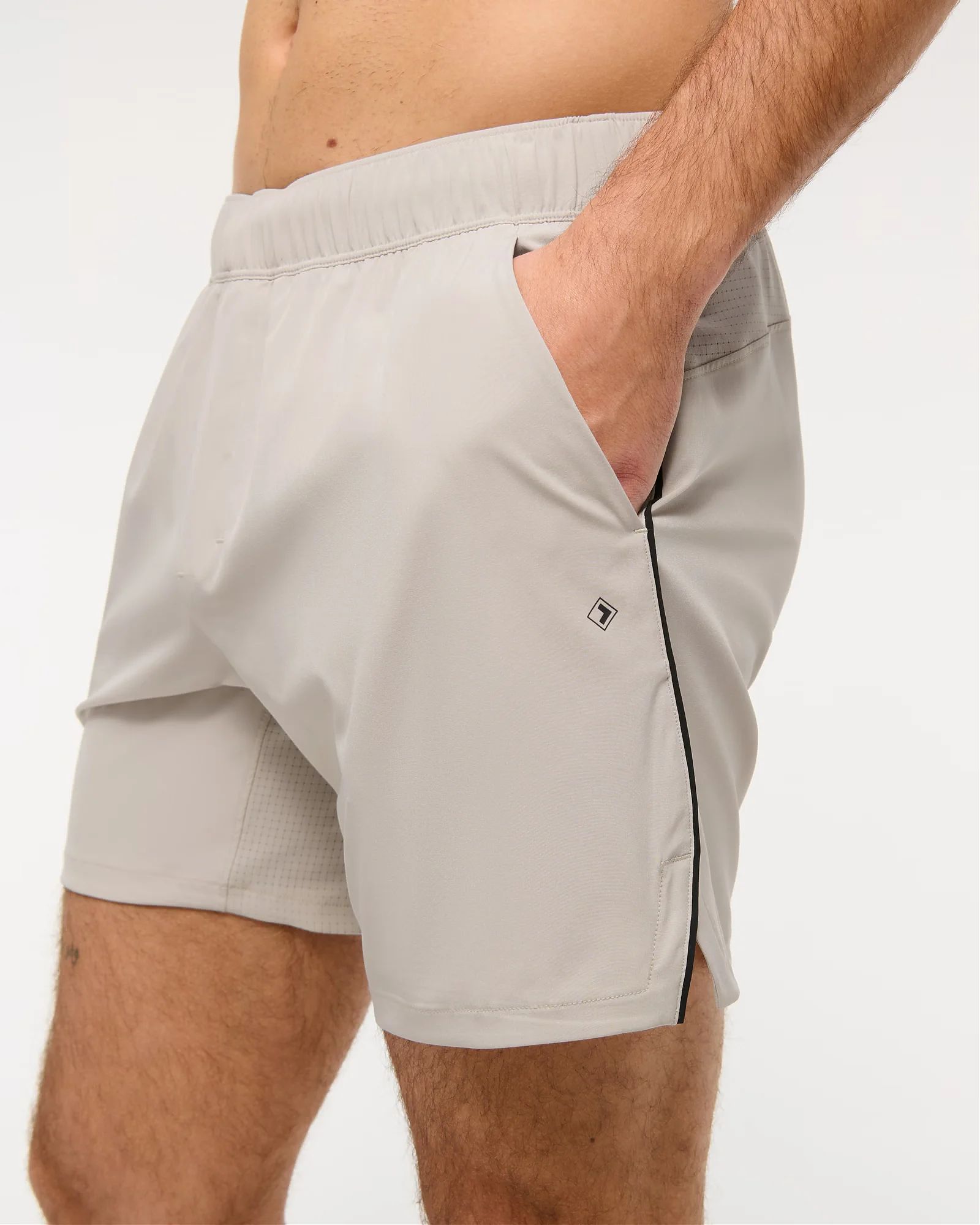 Комфортные мужские шорты YPB длиной 15 см без подкладки из лёгкой эластичной ткани для тренировок. Пояс на шнурке, боковые карманы и скрытый карман на молнии для мелочей..
