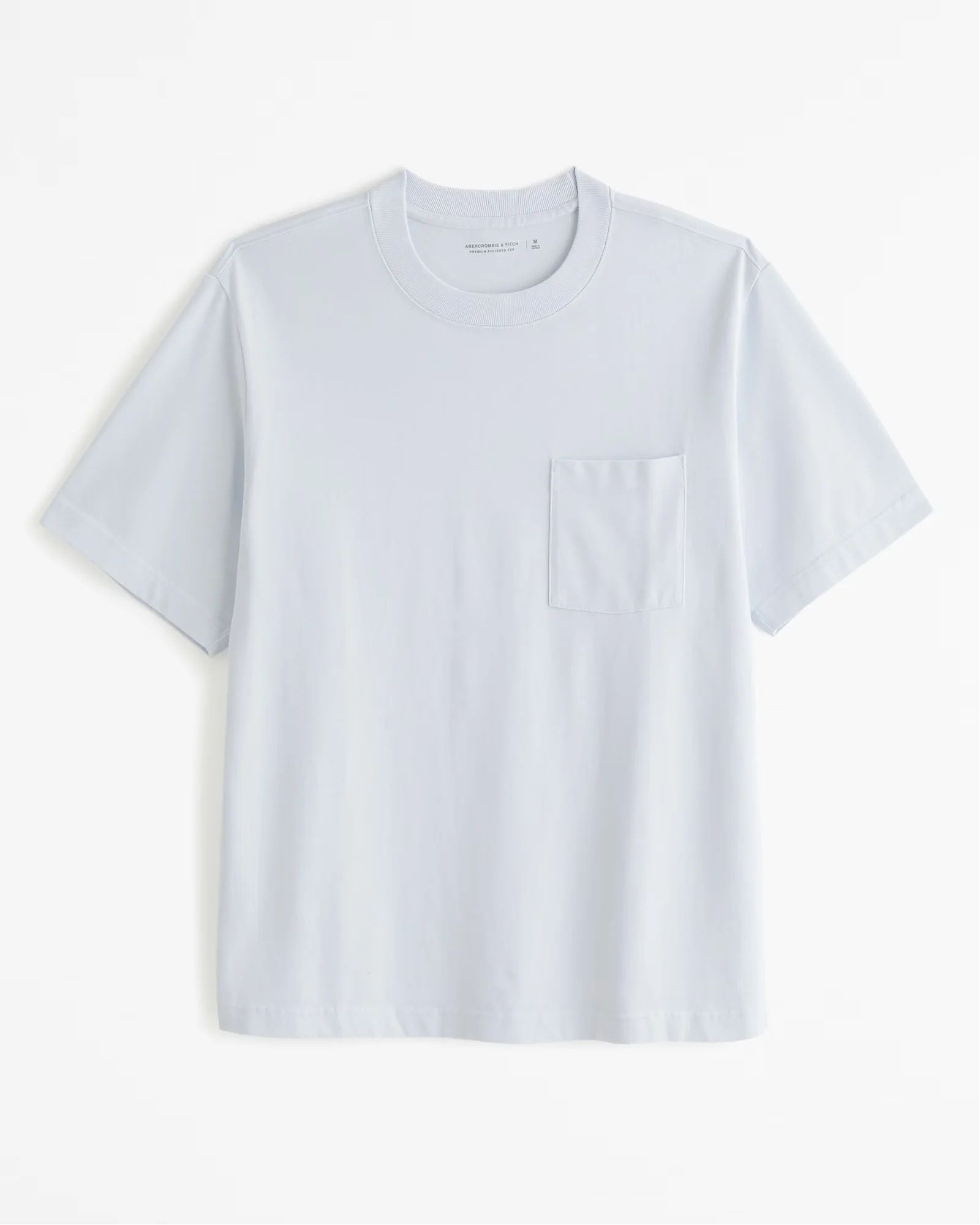 Классическая, премиальная футболка Abercrombie & Fitch голубого цвета с коротким рукавом из плотной ткани softAF 275 г с биополировкой, которая создает ощущение чистоты и свежести на ощупь. Имеет свободный силуэт и нагрудный карман.