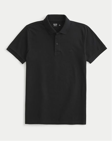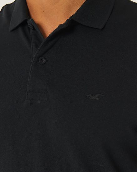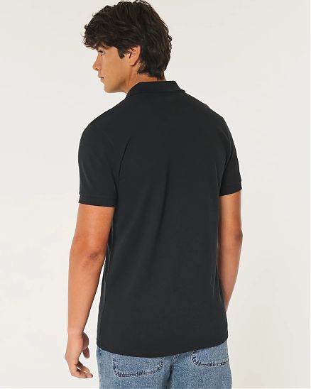 Очень мягкое и эластичное поло Hollister черного цвета, удобное, с воротом на пуговицах и вышитым логотипом слева на груди. Ткань Advanced Stretch. Облегающий крой.