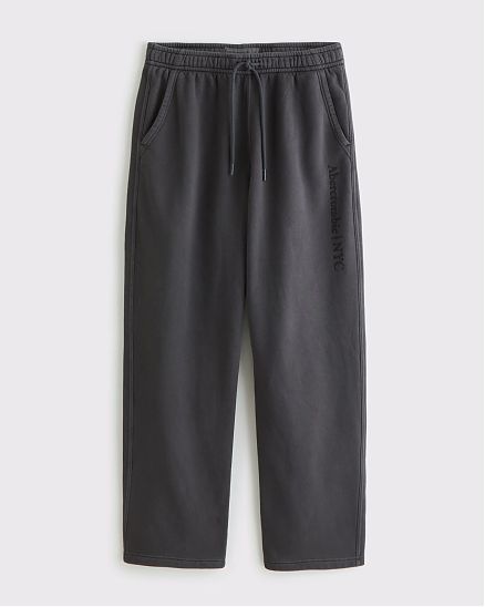 Оригинальные мужские спортивные штаны Abercrombie & Fitch из мягкого флиса: расслабленный силуэт, наружные шнуры на поясе, открытый прямой низ и вышитый логотип. Практичны для города и отдыха.