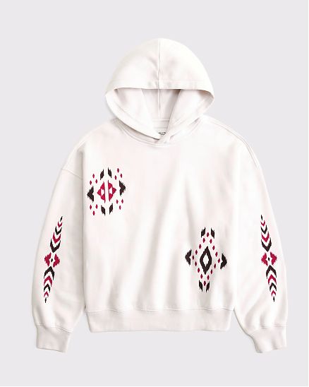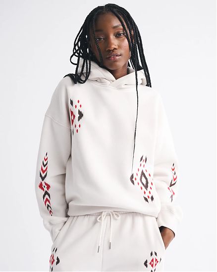 Уютная женская толстовка Abercrombie & Fitch светло-песочного цвета из мягкого флиса SoftAF MAX с вышивкой, капюшоном, эластичными манжетами и низом.