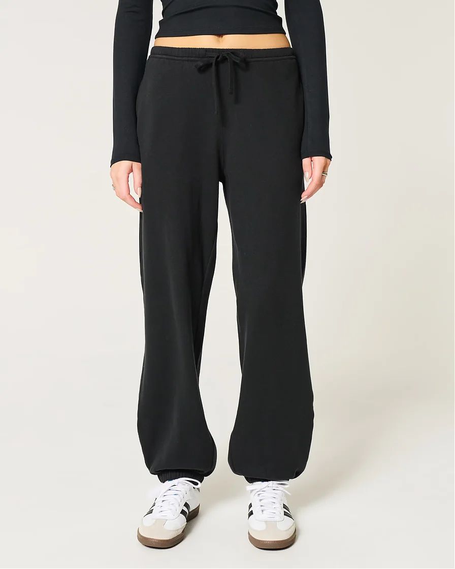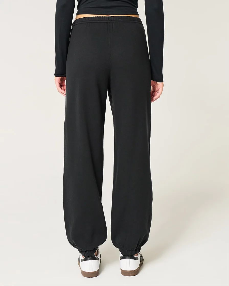 Оригинальные женские джоггеры Hollister в объёмном крое: мягкий флис, карманы, пояс на шнурке, манжеты по низу для удобной посадки и повседневной носки.