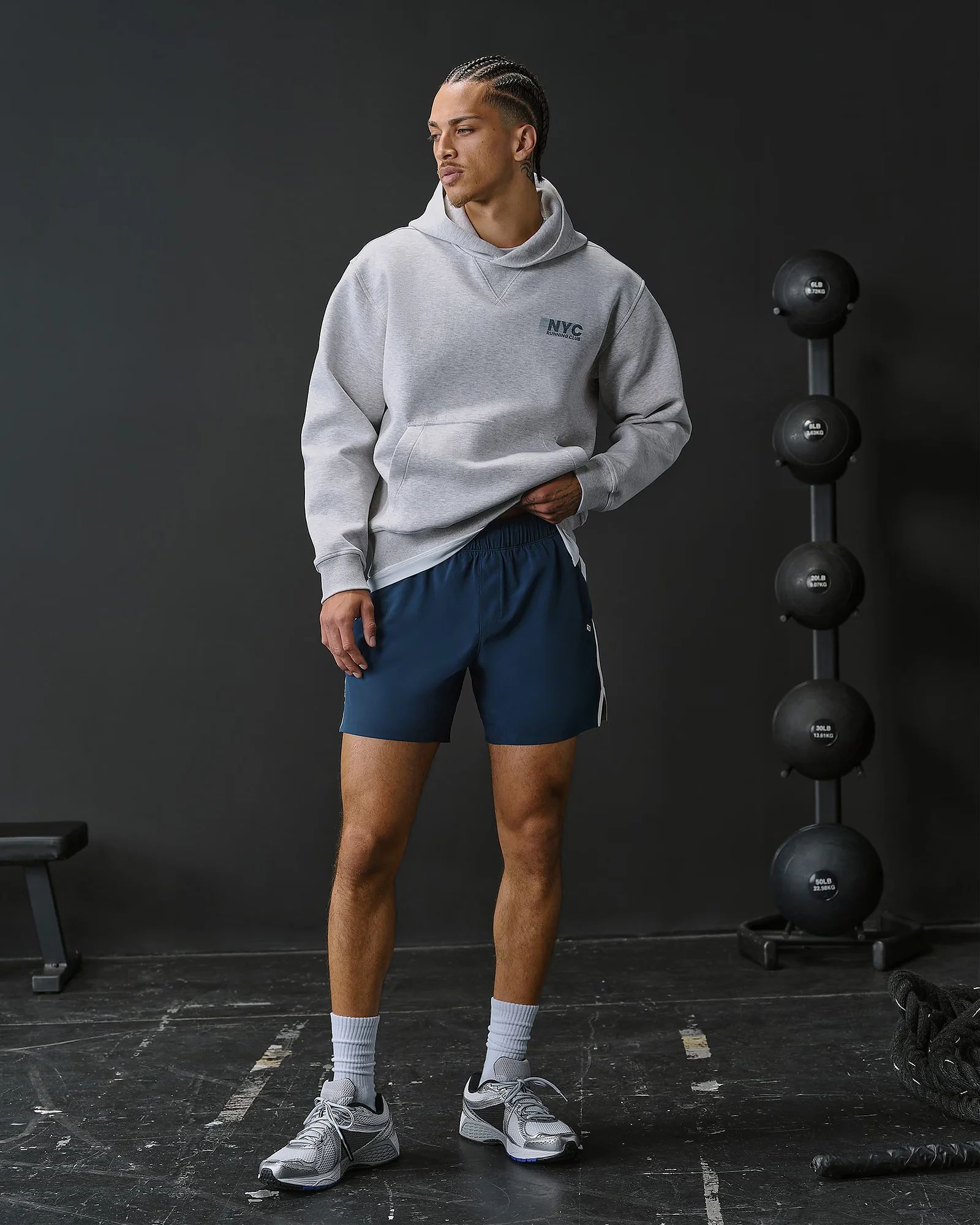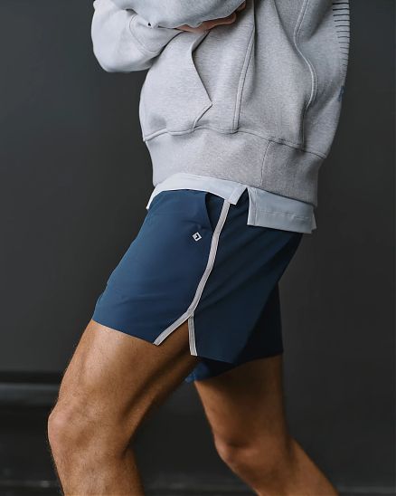 Новые мужские шорты YPB тёмно‑синего цвета из лёгкой ткани motionTEK которые легко тянутся в 4 направлениях. Длина по внутреннему шву 15 см, пояс со шнурком, боковые карманы и скрытый карман на молнии для мелочей.